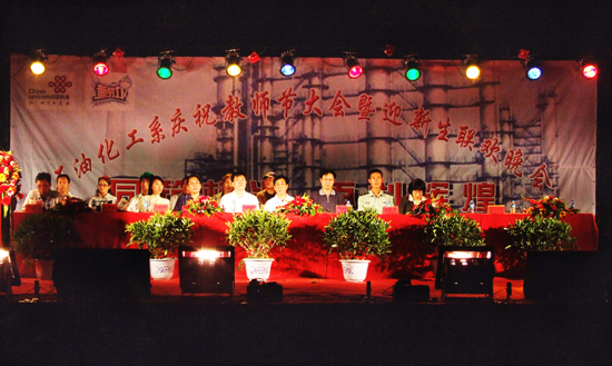 圖為石油化工系慶祝教師節(jié)大會(huì)暨迎新生聯(lián)歡晚會(huì)開幕式。學(xué)院領(lǐng)導(dǎo)及石油化工系師生千余人觀看演出。