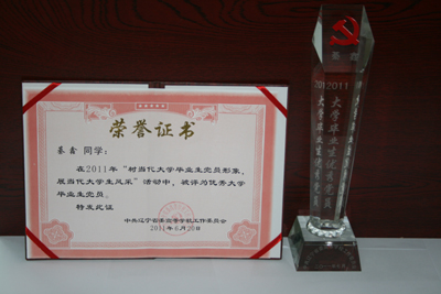 近日,在中共遼寧省委高校工委組織的2011年“樹當(dāng)代大學(xué)畢業(yè)生黨員形象,展當(dāng)代大學(xué)生風(fēng)采”活動(dòng)中,學(xué)院自動(dòng)化系學(xué)生綦鑫當(dāng)選為遼寧省優(yōu)秀大學(xué)畢業(yè)生黨員。