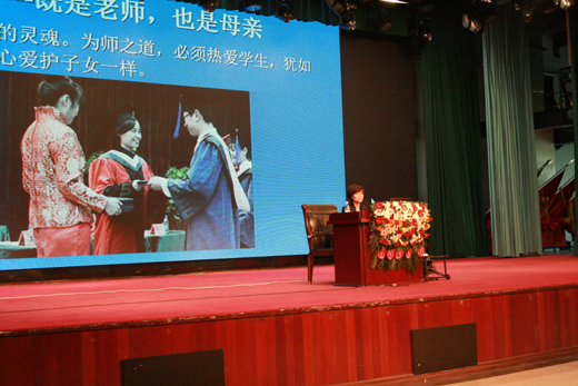 這次報(bào)告會(huì)是為深入貫徹落實(shí)遼寧省教育廳和遼寧省教科文衛(wèi)體工會(huì)轉(zhuǎn)發(fā)《教育部 中國(guó)教科文衛(wèi)體工會(huì)全國(guó)委員會(huì)關(guān)于印發(fā)<高等學(xué)校教師職業(yè)道德規(guī)范>的通知》(遼教發(fā)[2012]48號(hào))文件精神,切實(shí)加強(qiáng)我院教師職業(yè)道德建設(shè),推進(jìn)學(xué)院國(guó)家骨干校建設(shè)而舉行的。全國(guó)師德楷模提名獎(jiǎng)獲得者、遼寧省道德模范、大連海事大學(xué)賈鳳資教授從“關(guān)愛(ài)學(xué)生”是師德的靈魂、“熱愛(ài)講臺(tái)”是教師的職業(yè)道德素質(zhì)、“授課技巧”是教師的業(yè)務(wù)道德素質(zhì)、“刻苦鉆研”是教師的專業(yè)道德素質(zhì)四個(gè)方面,結(jié)合30年的教學(xué)實(shí)踐,講述了自己對(duì)教師職業(yè)道德的深刻認(rèn)識(shí),交流了自己對(duì)教師這一神圣職業(yè)的感想。省“五一”巾幗先進(jìn)個(gè)人、市職業(yè)道德建設(shè)十佳標(biāo)兵、遼寧工業(yè)大學(xué)程春梅教授從師者,父母者也;師者,知己者也;師者,指路者也;師者,管理者也四個(gè)方面,暢談了對(duì)教師職業(yè)道德的獨(dú)特理解。兩位教授感人至深的先進(jìn)事跡深深吸引著在場(chǎng)的老師和同學(xué)們,她們的事跡深深感動(dòng)了在場(chǎng)的每一個(gè)人,她們高尚的師德為與會(huì)教師樹立了榜樣和楷模,學(xué)生代表為她們獻(xiàn)花表達(dá)敬意。