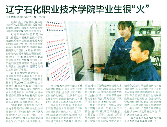 遼寧石化職業(yè)技術(shù)學(xué)院畢業(yè)生很“火”(3月27日遼寧日?qǐng)?bào)地方新聞版報(bào)道)