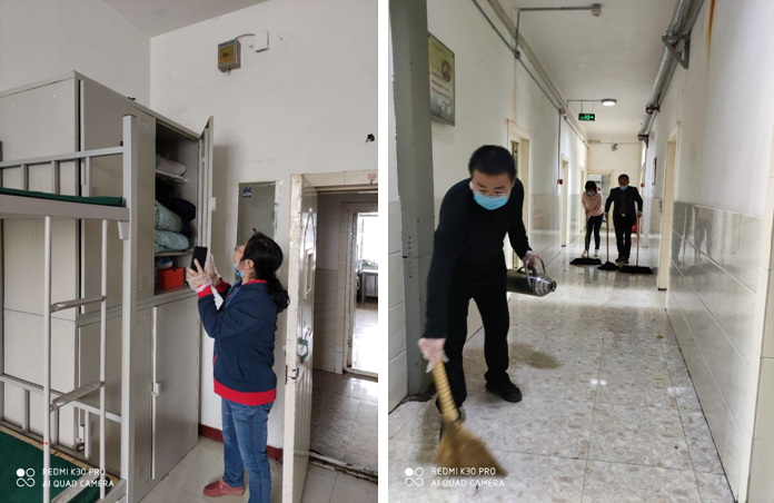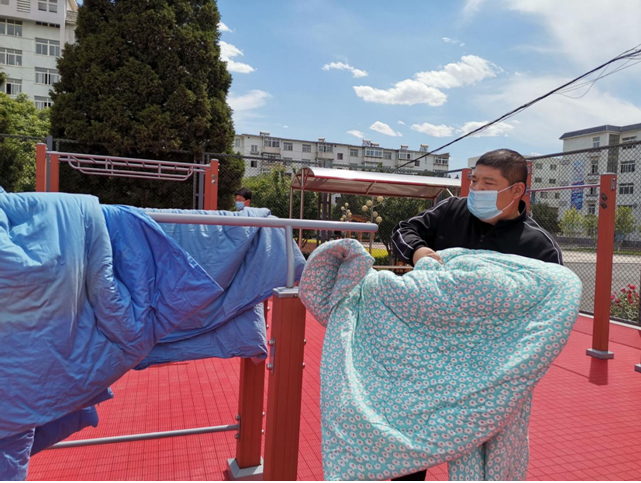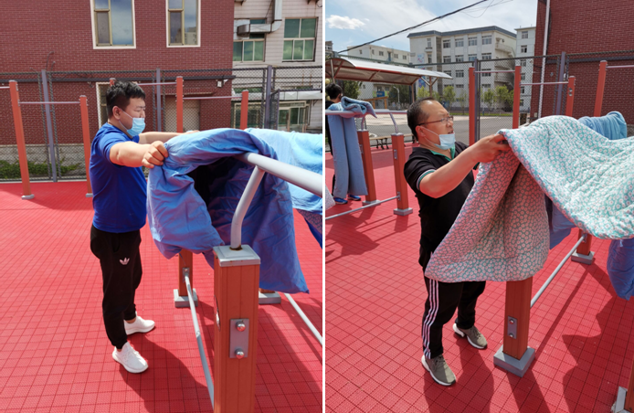 5月21日、5月25日,自動(dòng)化系黨總支部教師黨員及畢業(yè)班輔導(dǎo)員、班主任打掃寢室衛(wèi)生、通風(fēng)消毒、晾曬被子,為畢業(yè)年級(jí)學(xué)生返校復(fù)學(xué)做好準(zhǔn)備。