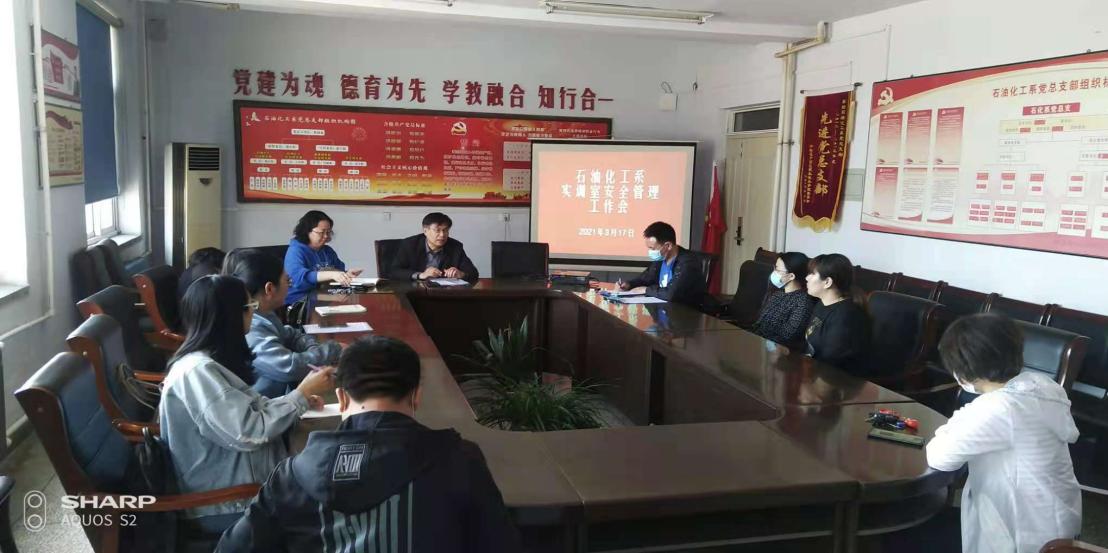 首先,石油化工系召開實訓室安全管理工作專題會議。石油化工系齊向陽主任、付麗麗副主任及全系實訓室管理員參加。傳達教育部及遼寧省教育廳和學院有關(guān)實訓室安全管理的最新指示精神,統(tǒng)一認識,確保在實驗室安全責任落實到位、管理制度執(zhí)行嚴格、宣傳教育充分、工作保障體系健全。
