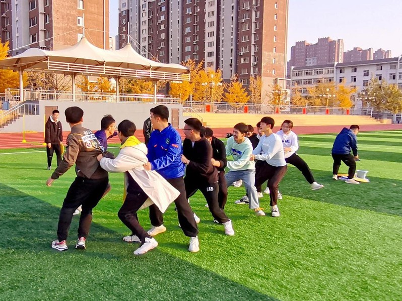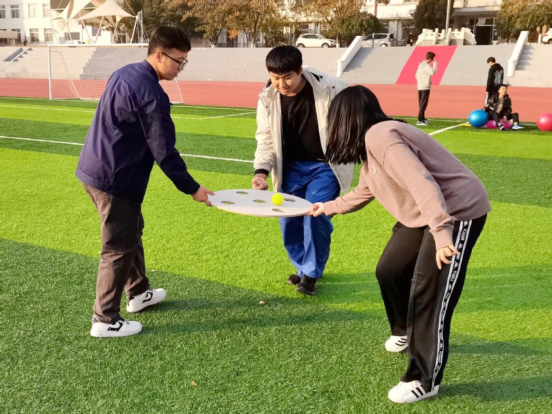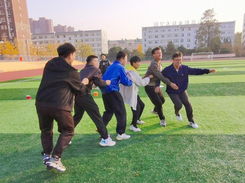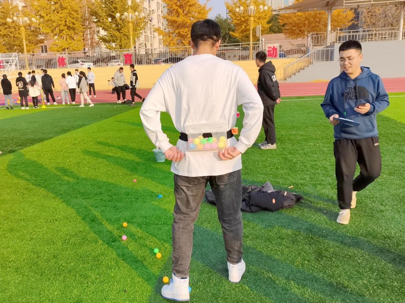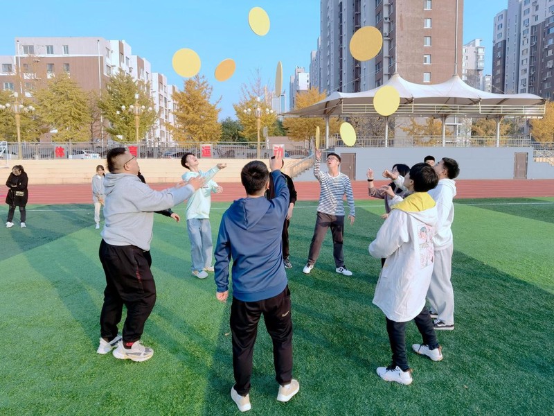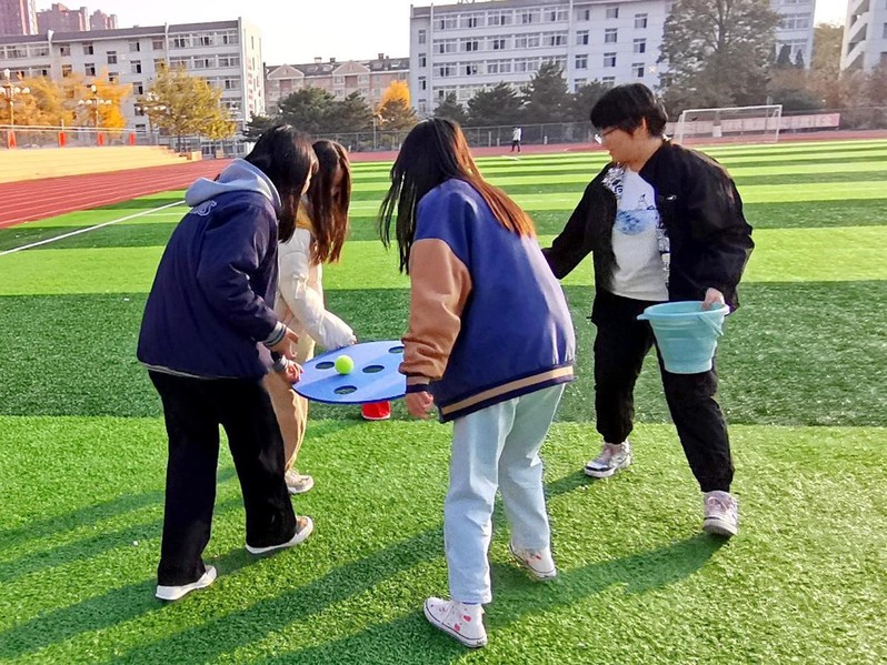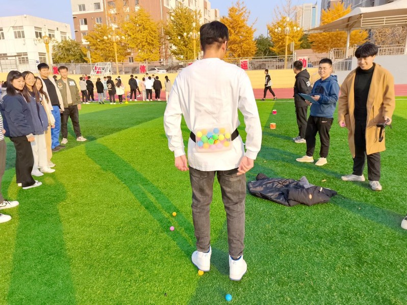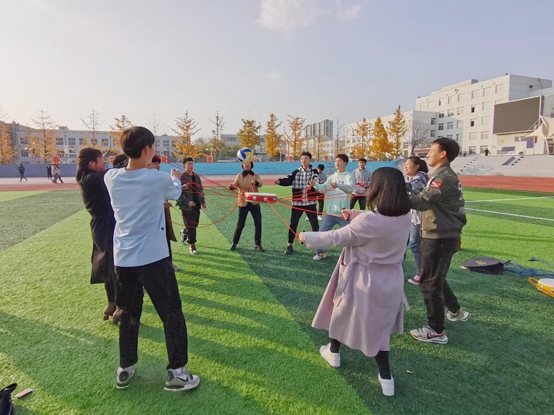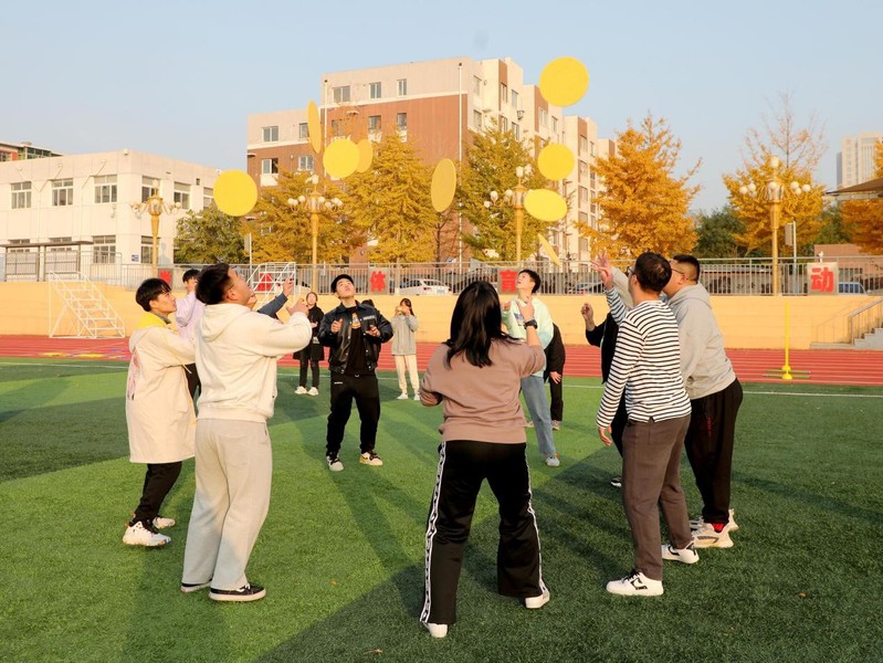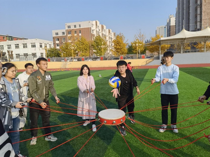 為貫徹落實習近平總書記“七一”重要講話精神,為增強黨員教師責任意識、擔當意識、機遇意識和風險意識,提高全體黨員自我愛惜、自我調適、自我保護的意識,始終保持趨正向善、積極樂觀、愈挫愈奮的健康心態(tài),不斷增強黨組織的號召力和凝聚力,提升黨員教師的集體榮譽感和使命感,牢記習近平總書記對廣大青年的殷切期望,堅持立德樹人,關心和愛護青年學生,為他們實現(xiàn)人生出彩搭建舞臺,牢記初心使命,堅定理想信念,不斷增進師生了解,建立和形成和諧的師生關系。11月3日下午,由馬克思主義學院直屬黨支部和遼寧省高校心理健康教育名師金鑫工作室共同主辦,馬克思主義學院青年志愿者協(xié)會承辦的“堅定理想信念,激揚青春夢想”師生團體心理素質拓展訓練在超越運動場舉行?;顒佑神R克思主義學院直屬黨支部書記、遼寧省高校心理健康教育名師工作室主持人金鑫指導,馬克思主義學院青年志愿者協(xié)會策劃部和實踐部設計。馬克思主義學院直屬黨支部教師、遼寧省高校心理健康教育名師金鑫工作室主要成員、馬克思主義學院青年志愿者協(xié)會和宣傳統(tǒng)戰(zhàn)部融媒體中心全體學生共70余人參加此次活動 此次團體心理素質拓展訓練設置了“同心鼓”“趣味接力賽”“老鷹捉小雞”“旋轉乒乓”“食指傳球”“移花接木”等6項趣味性和協(xié)作性于一體的團訓項目?!巴墓摹弊寧熒趨f(xié)作中不斷凝聚向心力;“趣味接力賽”讓師生學會在困難中傳承接力,砥礪奮進;“老鷹捉小雞”讓師生在追逐與守護中體會集體與個人的關系,體會守護集體的責任與擔當;“旋轉乒乓”讓師生在笑聲中降低壓力;“食指傳球”訓練師生團隊合作和注意力集中;“移花接木”訓練師生身體協(xié)調性和敏捷性。