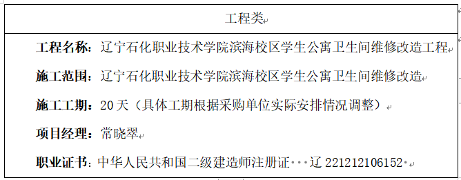 二、項目名稱:遼寧石化職業(yè)技術(shù)學院濱海校區(qū)學生公寓衛(wèi)生間維修改造工程