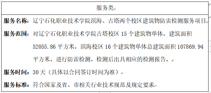 二、項目名稱:遼寧石化職業(yè)技術(shù)學院濱海、古塔兩個校區(qū)建筑物防雷檢測服務項目
