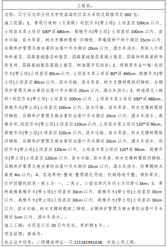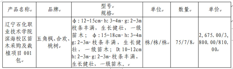 二、項目名稱:遼寧石化職業(yè)技術(shù)學(xué)院濱海校區(qū)苗木采購及栽植項目