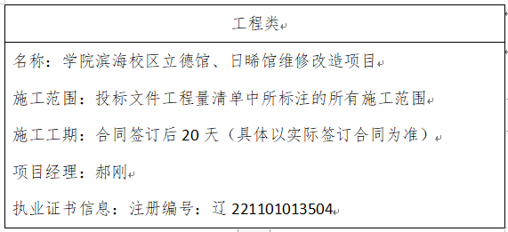二、項(xiàng)目名稱(chēng):學(xué)院濱海校區(qū)立德館、日晞館維修改造項(xiàng)目