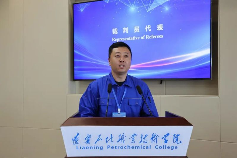 裁判員代表遼寧石化職業(yè)技術(shù)學(xué)院教師王洪濤發(fā)言