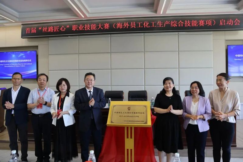 于忠黨和董進(jìn)等領(lǐng)導(dǎo)共同為遼寧石化職業(yè)技術(shù)學(xué)院中國特色文化國際傳播教育基地揭牌。