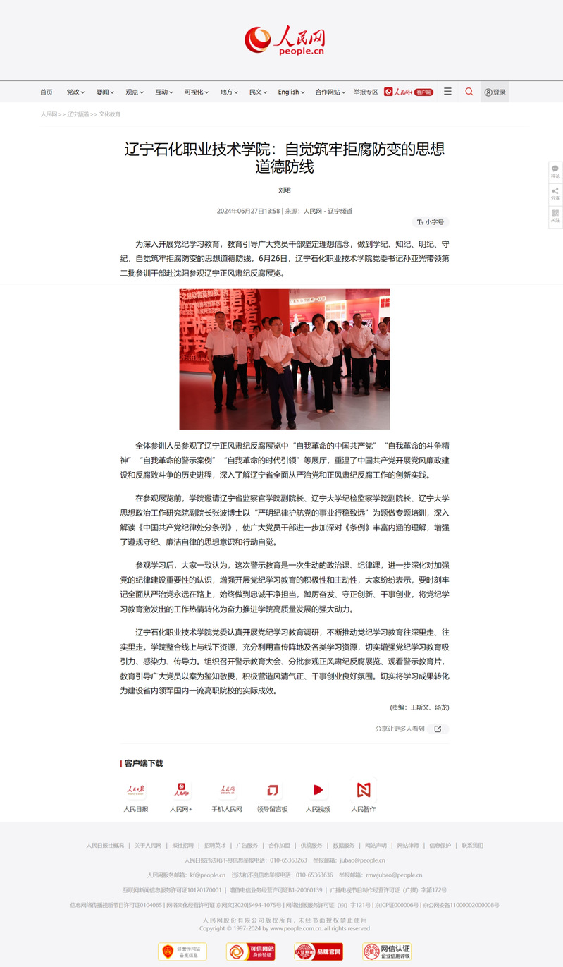 新聞鏈接:遼寧石化職業(yè)技術(shù)學(xué)院:自覺筑牢拒腐防變的思想道德防線 (people.com.cn)