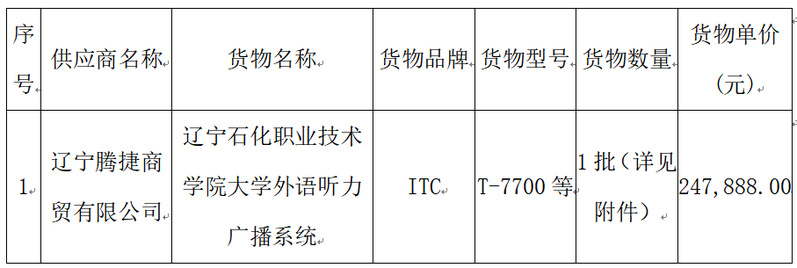 二、項(xiàng)目名稱(chēng):遼寧石化職業(yè)技術(shù)學(xué)院大學(xué)外語(yǔ)聽(tīng)力廣播系統(tǒng)采購(gòu)項(xiàng)目
