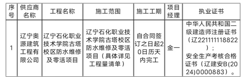 二、項目名稱:遼寧石化職業(yè)技術學院古塔校區(qū)防水維修及零活項目
