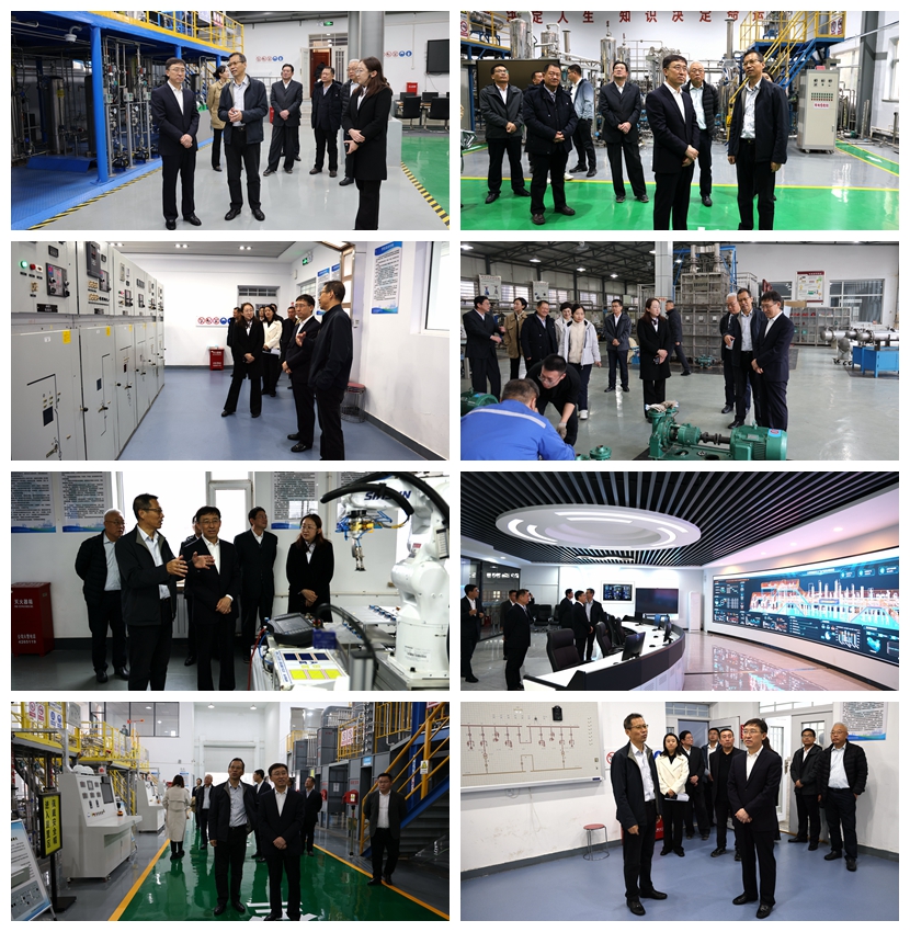 會(huì)前,焦陽一行實(shí)地考察學(xué)校西區(qū)實(shí)訓(xùn)基地催化裂化實(shí)訓(xùn)車間、柴油加氫實(shí)訓(xùn)車間、化工 HSE 實(shí)訓(xùn)車間、熱能動(dòng)力實(shí)訓(xùn)車間、高低壓實(shí)訓(xùn)車間、化工裝備實(shí)訓(xùn)車間、化工單元操作和常減壓實(shí)訓(xùn)車間、磺酸鹽實(shí)訓(xùn)車間、工業(yè)機(jī)器人實(shí)訓(xùn)車間、HSE 體驗(yàn)館、濱海校區(qū)應(yīng)急管理基地和乙烯仿真工廠。