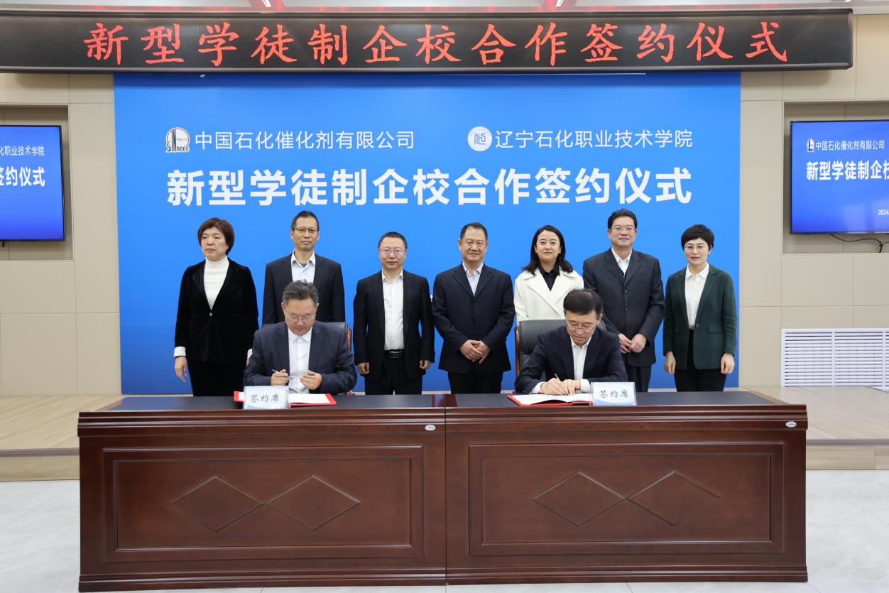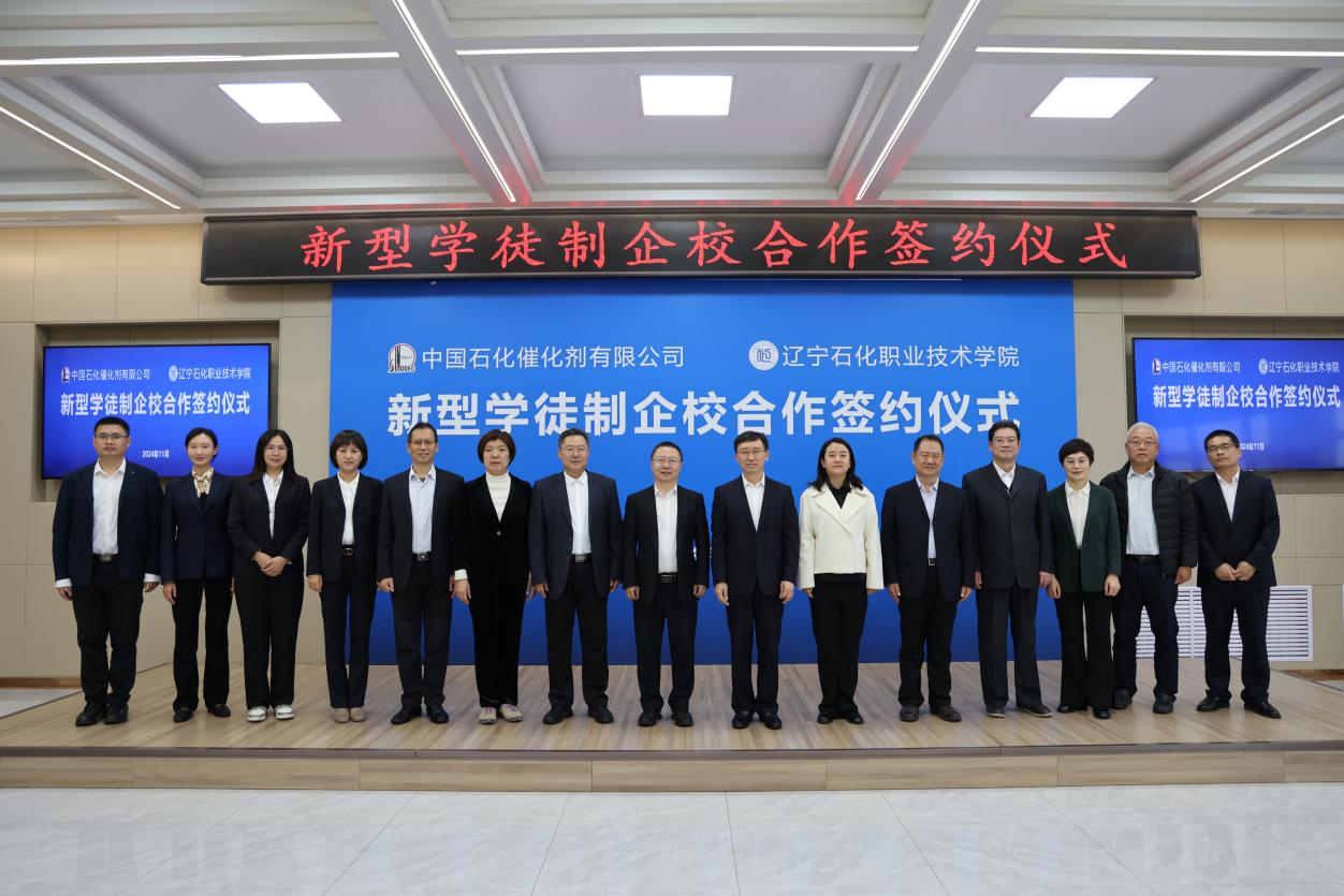 11月14日,遼寧石化職業(yè)技術(shù)學(xué)院與中國石化催化劑有限公司新型學(xué)徒班簽約儀式在學(xué)校濱海校區(qū)舉行。中國石化催化劑有限公司董事長、黨委書記焦陽,中國石化催化劑有限公司副總工程師,中石化催化劑天津有限公司執(zhí)行董事、黨委書記、總經(jīng)理鄭建坡,中石化催化劑大連有限公司(撫順分公司)執(zhí)行董事、黨委書記許良,中國石化集團(tuán)公司黨組組織部(人力資源部、黨組編制辦)勞動(dòng)管理室高級主管黨玉涵,學(xué)校黨委書記孫亞光,黨委副書記、院長于忠黨,紀(jì)委書記于麗,副院長郝萬新出席簽約儀式。簽約儀式由郝萬新主持。