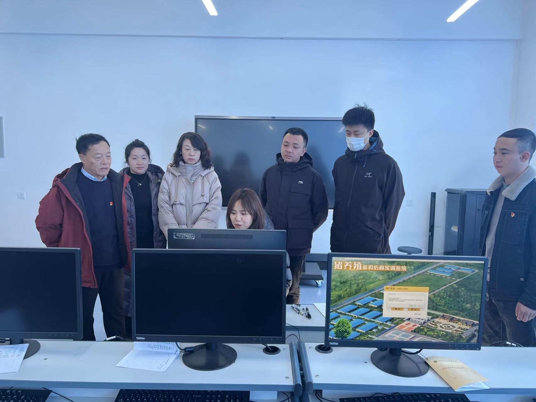 鄉(xiāng)村振興學院副院長張立新帶領一行人參觀了校園及實驗實訓室,了解學生學習情況及當前畜牧專業(yè)實訓課程細節(jié)。
